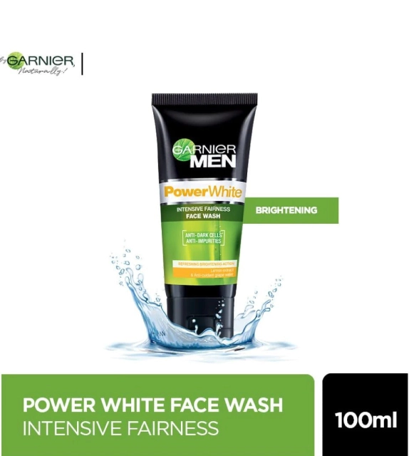 Get lighter and clearer skin with Garnier Power White Fairness Face Wash. Daily dust, grime and pollution can result in darkening, acne and pimples. Enriched with brightening lemon extracts and anti-oxidant grape water to remove dark, dead cells and impurities, it is your key to healthy-looking clear skin that looks and feels refreshed.