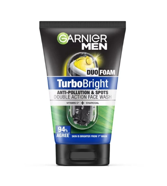 Garnier Men Turbo Bright Double Action Face Wash, 100ml