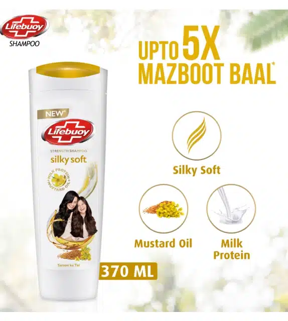 "Lifebuoy Silky Soft Strength Shampoo with the power of Milk Protein, nourishes your hair from root to tip, making hair strong* Along with the soft milk protein power, it also has the mustard oil extracts to strengthen your hair. Both ingredients make the shampoo suitable for ladies to wash their hair and make them silky soft. In this way, you need not worry about a bad hair day when you can finger comb your hair whenever you want. *Prevents hair breakage About the Item: ● Helps in removing oil and dust particles from your hair ● Contains Milk Protein and Almond oil ● Provides nourishment to strengthen hair from root to tip ● Effortless hair care ● No harmful chemicals ● For best results use twice a week "